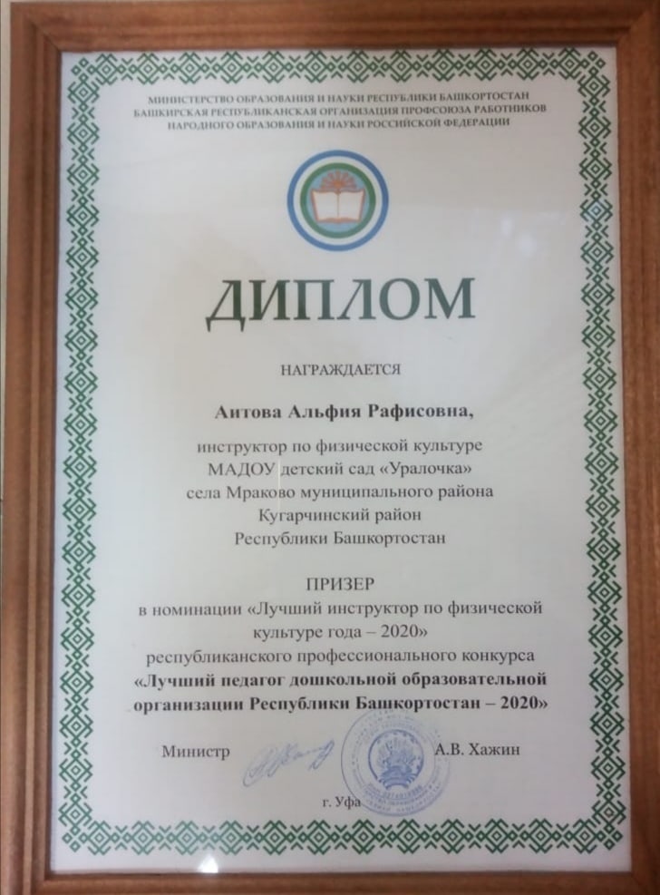 «Лучший педагог дошкольной образовательной организации Республики Башкортостан — 2020"/Башҡортостан Республикаһы мәктәпкәсә белем биреү ойошмаһы иң яҡшы педагогы - 2020й.